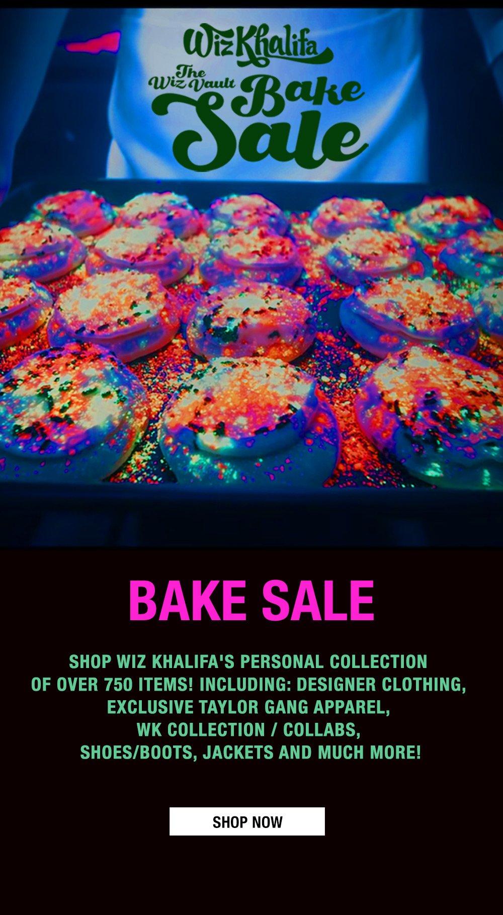 Here you will find the largest collection of Wiz Khalifa’s personal clothing, Taylor Gang exclusives, Wiz’s sneaker collection, one of a kind memorabilia items and MORE!